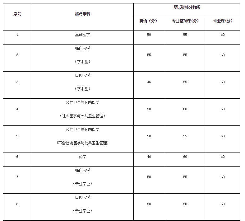 二、參加復(fù)試考生初試成績(jī)基本要求