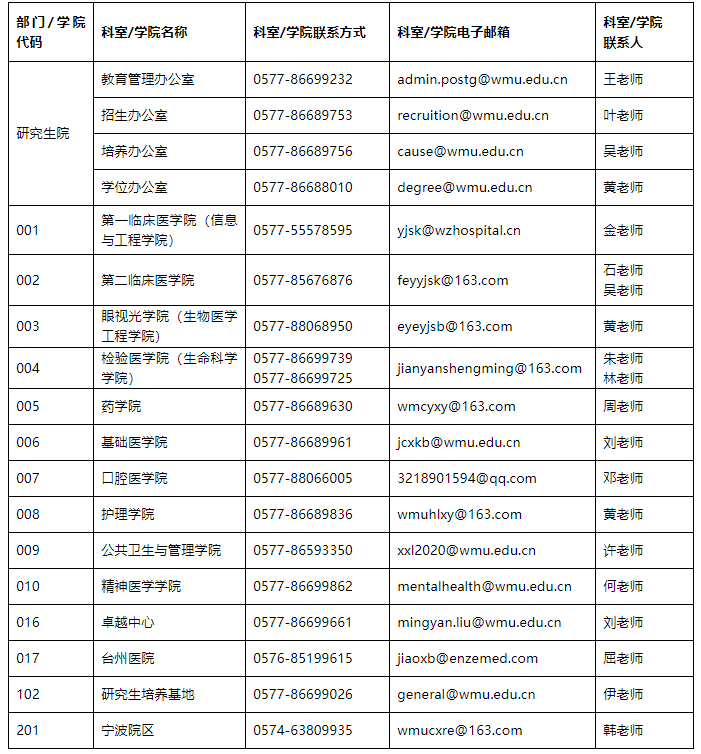 (三)研究生教育相關(guān)部門聯(lián)系方式見附表。