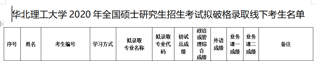 現(xiàn)將華北理工大學2020年全國碩士研究生招生考試擬破格錄取線下考生名單已經(jīng)公布,具體成績見附件,各位考生可以下載查詢。
