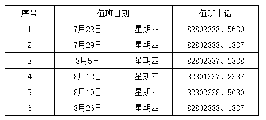 2021年暑期,研招辦繼續(xù)做好新生錄取通知書、畢業(yè)生檔案的發(fā)放和新生政審表、個人檔案接收工作,并每周安排老師集中受理對外咨詢(見附表),有工作需要的老師和同學(xué)可前來辦理或電話咨詢。其他時間可郵箱(yzb@bjmu.edu.cn)咨詢,研招辦老師將盡快回復(fù)。