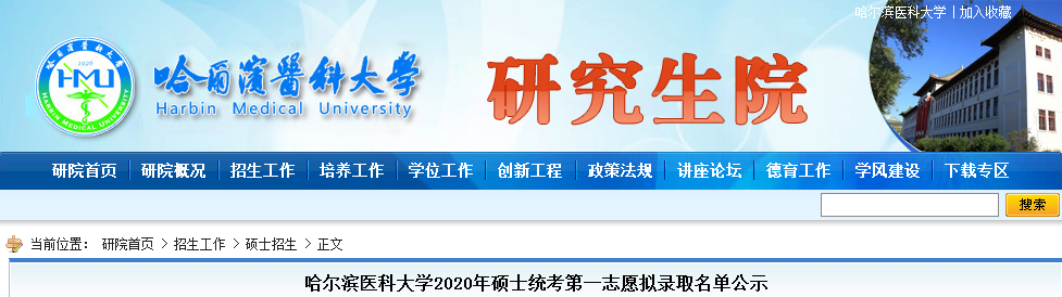 附件:哈爾濱醫(yī)科大學(xué)2020年碩士統(tǒng)考第一志愿擬錄取名單公示