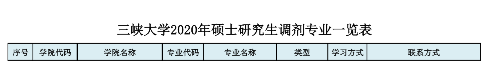 三峽大學(xué)2020年碩士研究生擬調(diào)劑專業(yè)見附件!