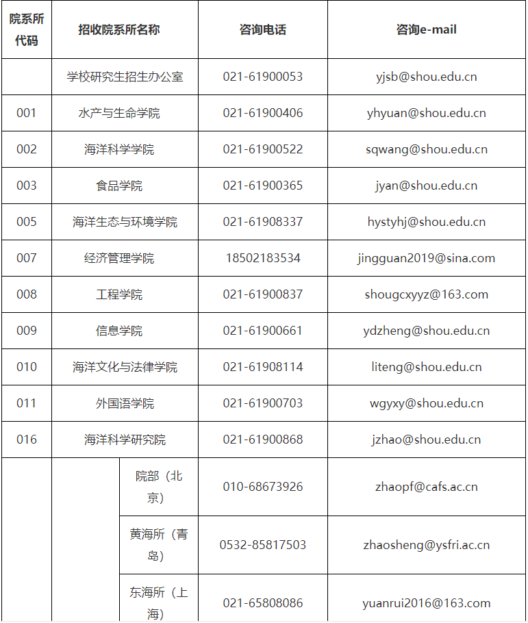 各招生院系所聯(lián)系方式: