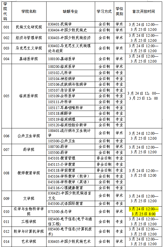 首次開(kāi)放時(shí)間為2021年3月24日起,各研究生培養(yǎng)單位接受調(diào)劑的專業(yè)、首次開(kāi)放時(shí)間如下,具體缺額信息以“調(diào)劑服務(wù)系統(tǒng)”中發(fā)布為準(zhǔn)。首次開(kāi)放時(shí)間結(jié)束后72小時(shí)內(nèi),完成調(diào)劑考生遴選和復(fù)試通知發(fā)送工作。