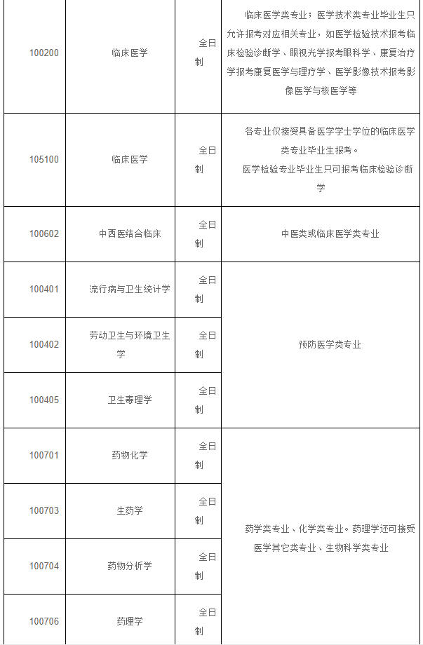 (七)第一志愿報考臨床醫(yī)學專業(yè)學位的考生可按相關政策調(diào)劑到醫(yī)學其他專業(yè),但第一志愿報考其他專業(yè)的考生不可調(diào)劑到臨床醫(yī)學專業(yè)學位。比如,調(diào)劑我校專業(yè)代碼為1051-的專業(yè)的考生,其第一志愿專業(yè)代碼必須為1051-。