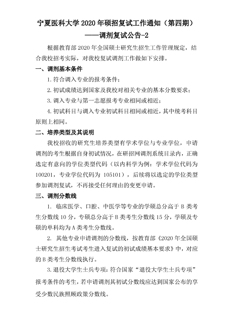 “寧夏醫(yī)科大學(xué)2020年碩招調(diào)劑復(fù)試公告(第二期)”相信是參加寧夏醫(yī)科大學(xué)研究生考試的朋友比較關(guān)注的事情,隨醫(yī)學(xué)教育網(wǎng)小編整理一起來了解一下吧!
