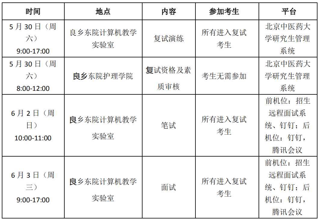 3.學(xué)校在研招網(wǎng)調(diào)劑系統(tǒng)發(fā)布復(fù)試通知,考生在學(xué)校發(fā)出復(fù)試通知后,在學(xué)指定的時(shí)間內(nèi),登錄研招網(wǎng)調(diào)劑系統(tǒng)進(jìn)行確認(rèn)(逾期視為放棄),并按要求參加復(fù)試。我院 2020 年研究生招生復(fù)試筆試內(nèi)容為臨床護(hù)理綜合、復(fù)試教材為《內(nèi)科護(hù)理學(xué)》、《外科護(hù)理學(xué)》、《婦產(chǎn)科護(hù)理學(xué)》、《兒科護(hù)理學(xué)》、《急救護(hù)理學(xué)》。請(qǐng)申請(qǐng)調(diào)劑的考生們隨時(shí)關(guān)注北京中醫(yī)藥大學(xué)研究生院、護(hù)理學(xué)院的有關(guān)通知。