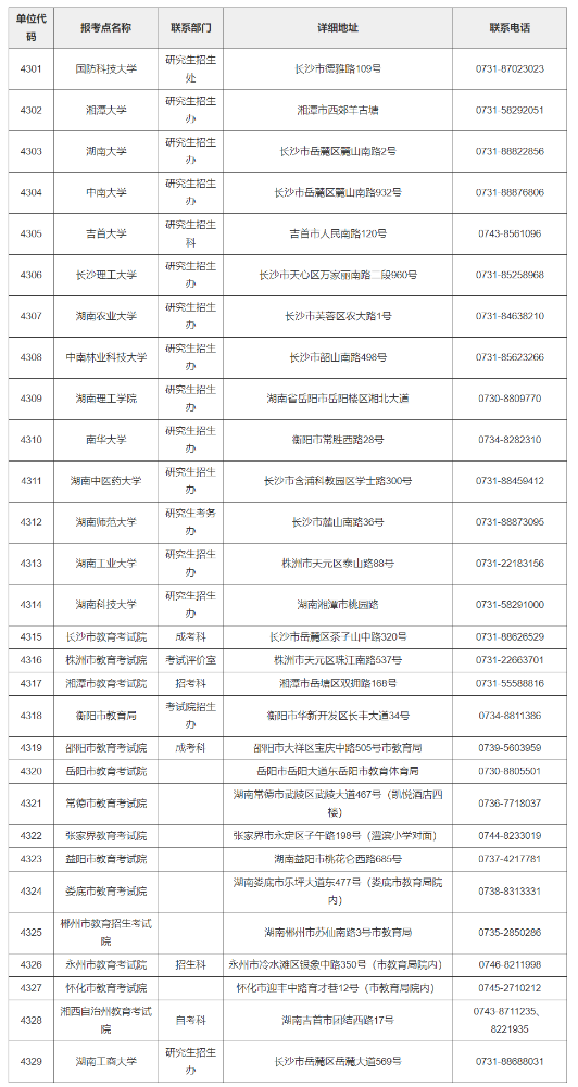 附件:湖南省各碩士生報考點聯(lián)系方式