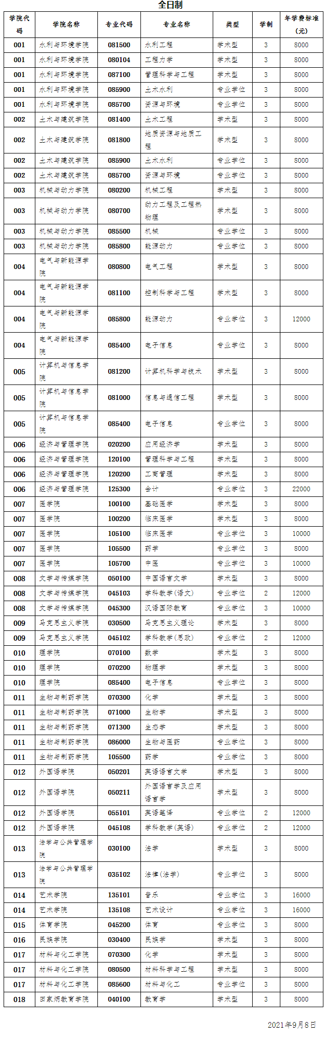 各專業(yè)收費標準見本簡章“接收推免專業(yè)一覽”,最終學費標準以相關(guān)部門公布為準。
