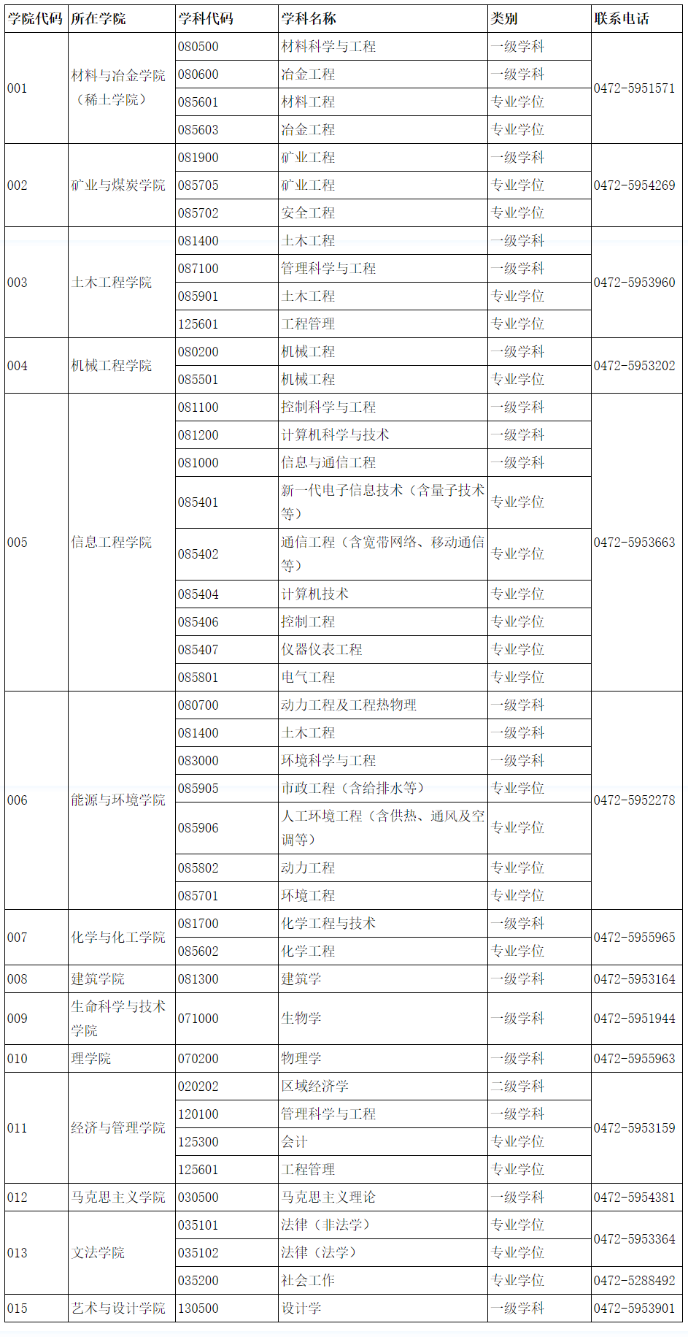 內(nèi)蒙古科技大學碩士學位授權(quán)學科、專業(yè)一覽及學院聯(lián)系方式