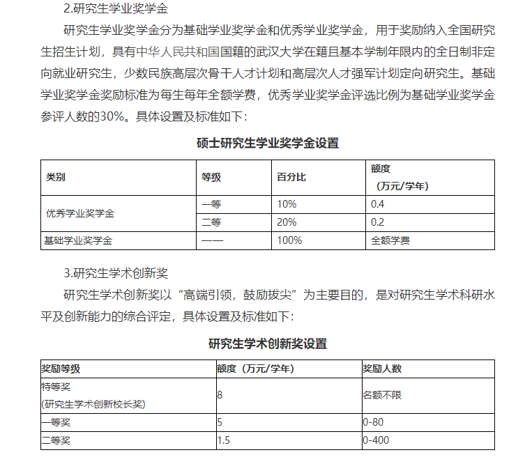研究生國家助學(xué)金資助對象為納入全國研究生招生計劃,具有中華人民共和國國籍的武漢大學(xué)在籍且基本學(xué)制年限內(nèi)的全日制非定向就業(yè)研究生,及少數(shù)民族高層次骨干人才計劃和高層次人才強(qiáng)軍計劃研究生。碩士研究生資助標(biāo)準(zhǔn)為每生每年6000元,全年按12個月發(fā)放。