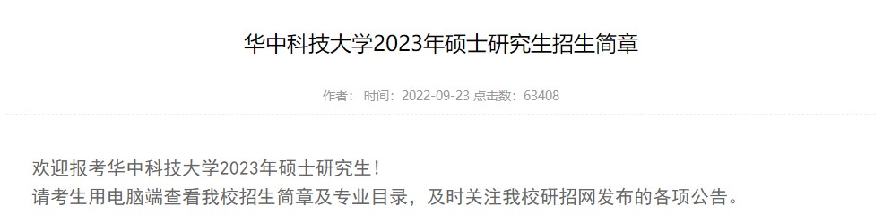 華中科技大學2023年碩士研究生招生簡章發(fā)布啦!具體內容如下: