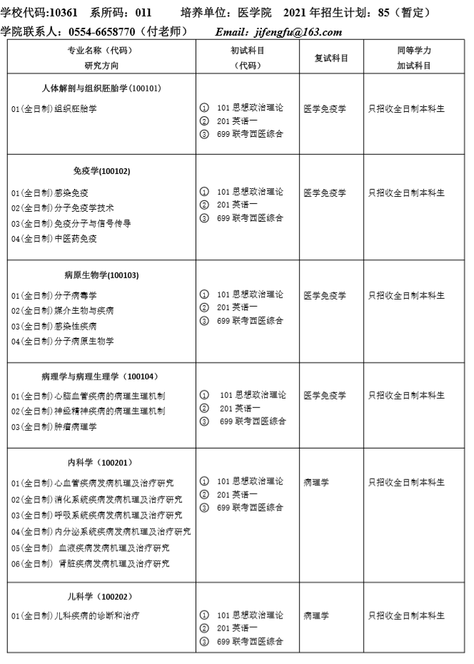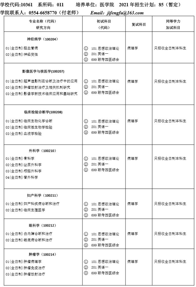 請有意向的同學(xué)請一定注意查看簡章內(nèi)容啦!以上是醫(yī)學(xué)教育網(wǎng)小編整理的“安徽理工大學(xué)醫(yī)學(xué)院2021年碩士研究生招生專業(yè)目錄與招生人數(shù)”全部內(nèi)容,想了解更多醫(yī)學(xué)考研知識及內(nèi)容,請點擊醫(yī)學(xué)教育網(wǎng)。希望各位同學(xué)能選到自己心儀的院校并順利通過初試!