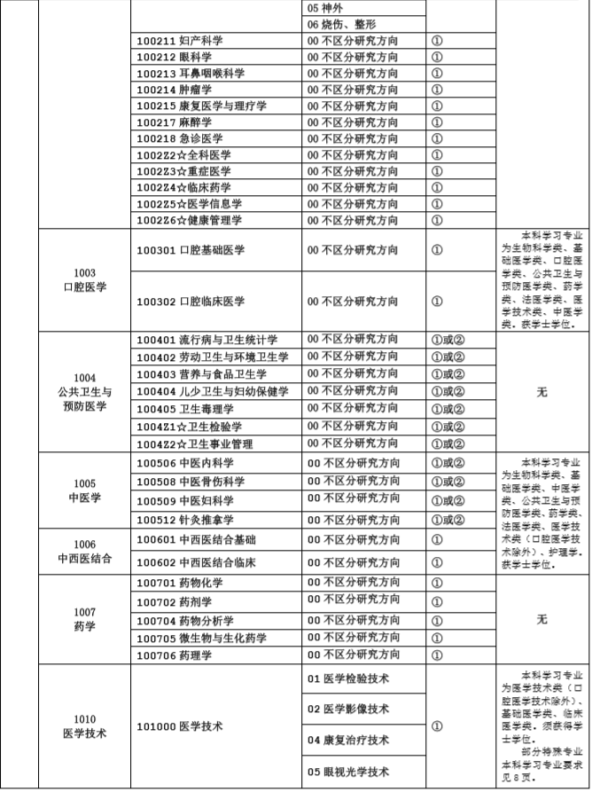本科學習專業(yè)為生物科學類、基礎醫(yī)學類、口腔醫(yī)學類、公共衛(wèi)生與預防醫(yī)學類、藥學類、法醫(yī)學類、醫(yī)學技術類、中醫(yī)學類。須獲得學士學位。