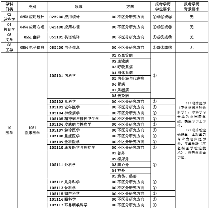 本科學習專業(yè)為醫(yī)學技術類(口腔醫(yī)學技術除外)、基礎醫(yī)學類、臨床醫(yī)學類。須獲得學士學位。