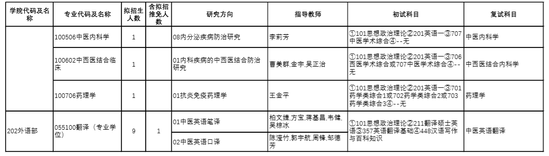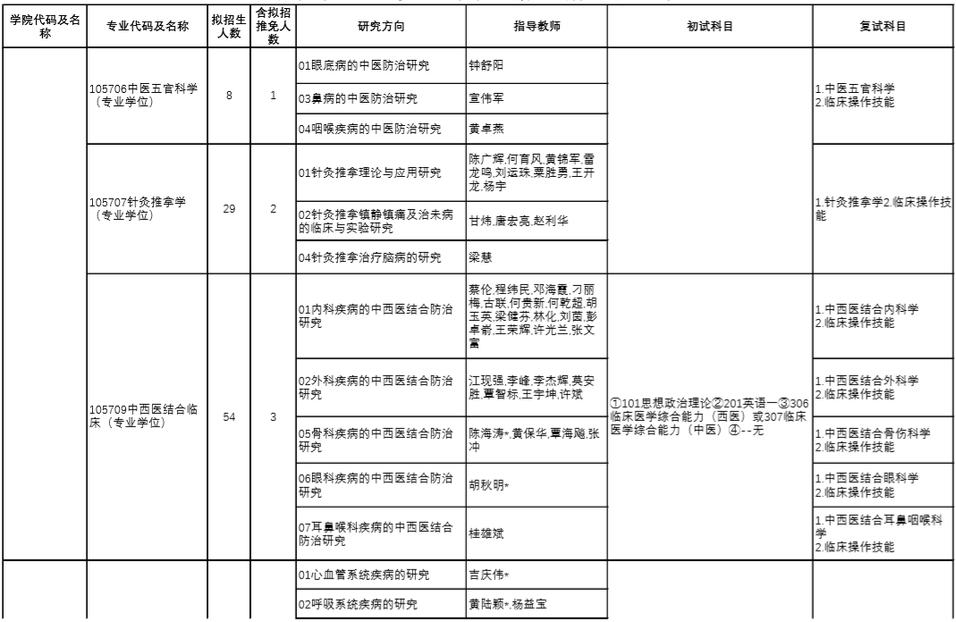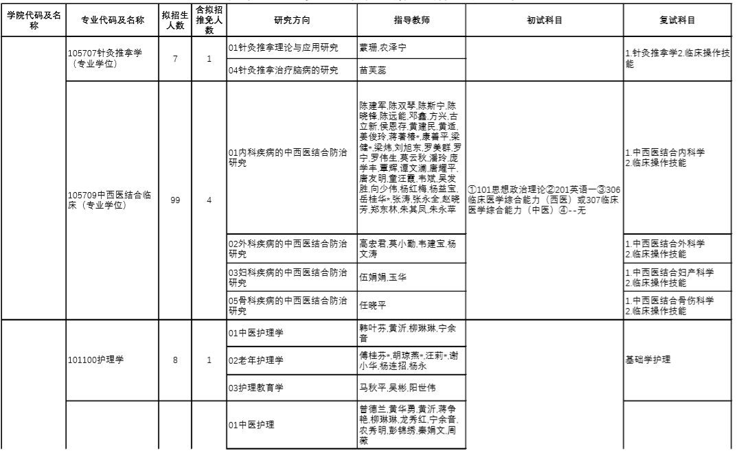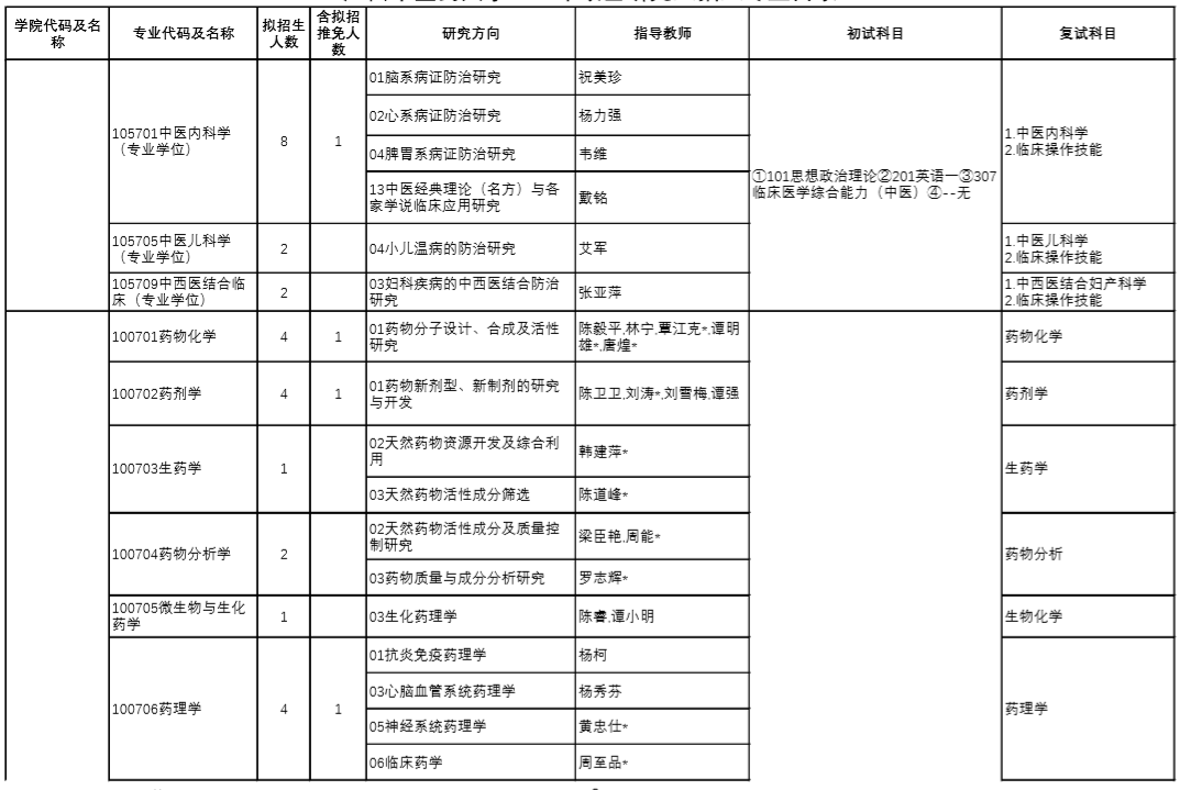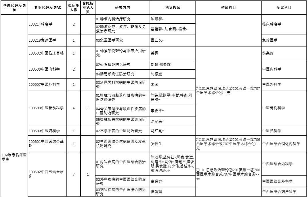 | 12 | 100512/105707 | 針灸推拿學(xué) | 中醫(yī)診斷學(xué)、方劑學(xué) |