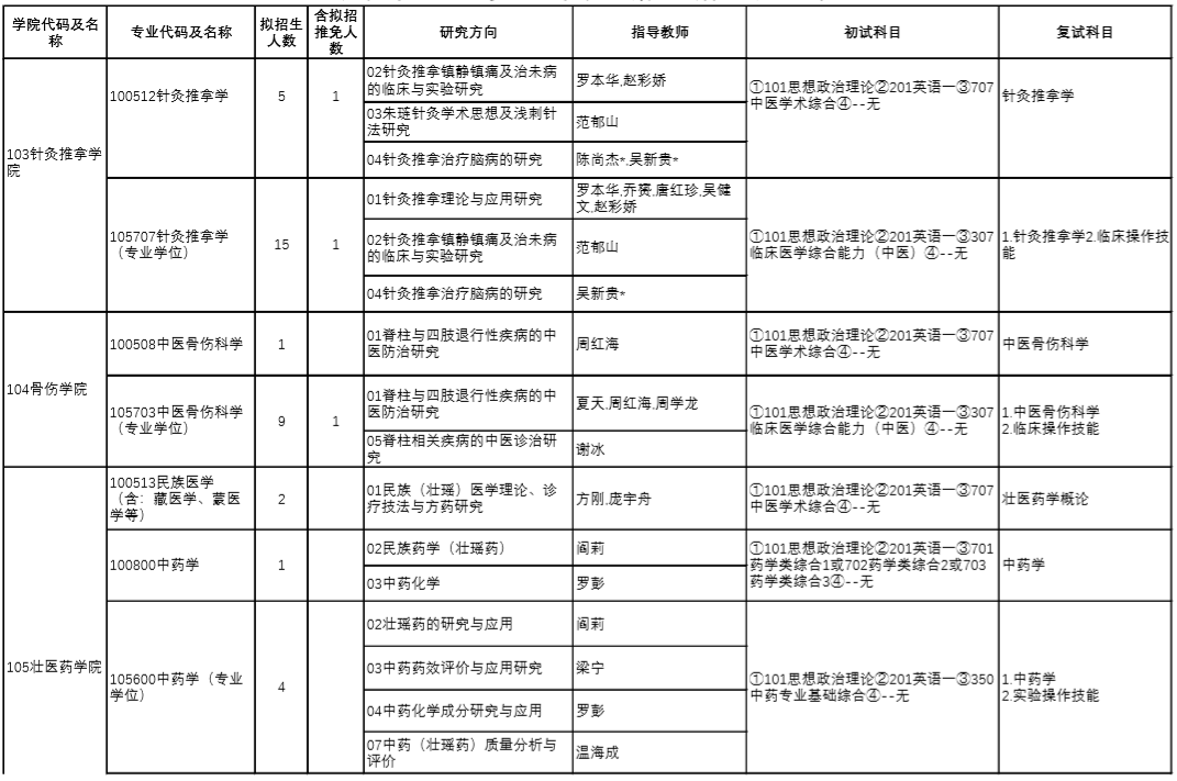 | 8 | 100508/105703 | 中醫(yī)骨傷科學(xué) | 中醫(yī)診斷學(xué)、方劑學(xué) |