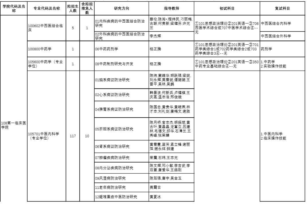 | 6 | 100506/105701 | 中醫(yī)內(nèi)科學(xué) | 中醫(yī)診斷學(xué)、方劑學(xué) |