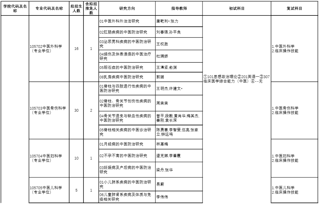 | 10 | 105705 | 中醫(yī)兒科學(xué) | 中醫(yī)診斷學(xué)、方劑學(xué) |