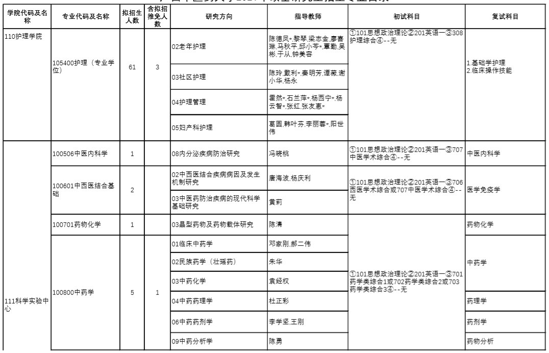 點擊查看:2021年廣西中醫(yī)藥大學(xué)碩士研究生招生章程及專業(yè)目錄