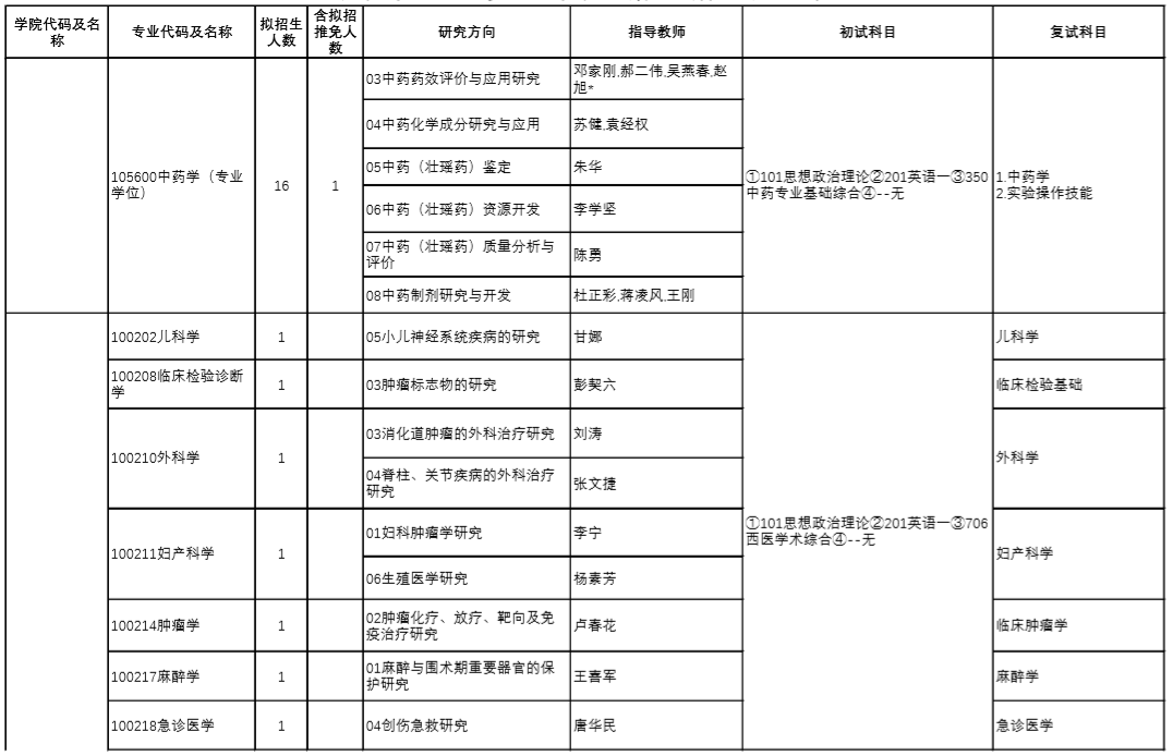 | 13 | 100513/105708 | 民族醫(yī)學(xué) | 中醫(yī)基礎(chǔ)理論、中醫(yī)內(nèi)科學(xué) |