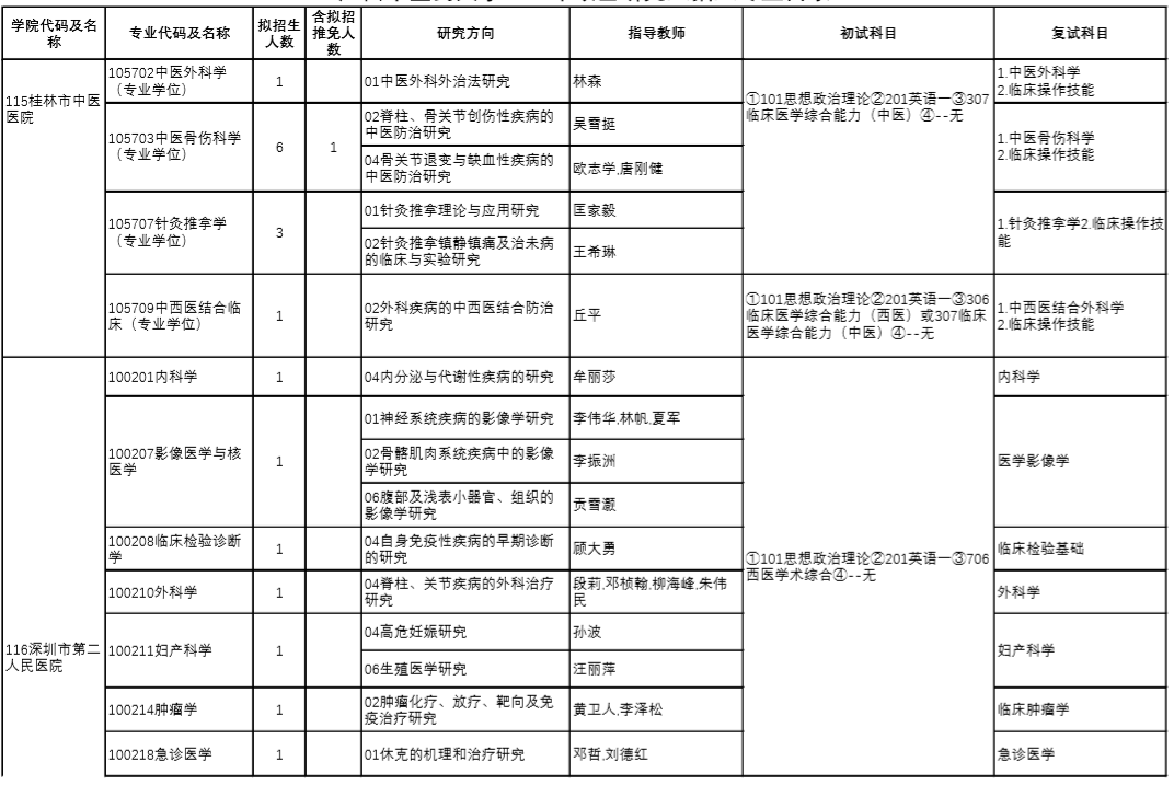 廣西中醫(yī)藥大學(xué)碩士研究生招生專業(yè)加試科目表