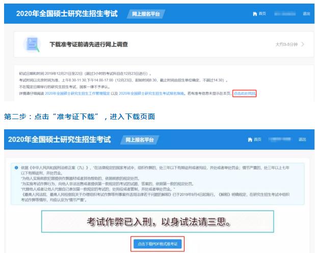 2020年12月10日至12月28日,考生可憑網(wǎng)報(bào)用戶(hù)名和密碼登錄“研招網(wǎng)”自行下載打印《準(zhǔn)考證》?!稖?zhǔn)考證》使用A4幅面白紙打印,正、反兩面在使用期間不得涂改或書(shū)寫(xiě)??忌鷳{下載打印的《準(zhǔn)考證》及有效居民身份證參加初試和復(fù)試。請(qǐng)考生務(wù)必妥善保管個(gè)人網(wǎng)報(bào)用戶(hù)名、密碼及《準(zhǔn)考證》、居民身份證等證件,避免泄露丟失造成損失。