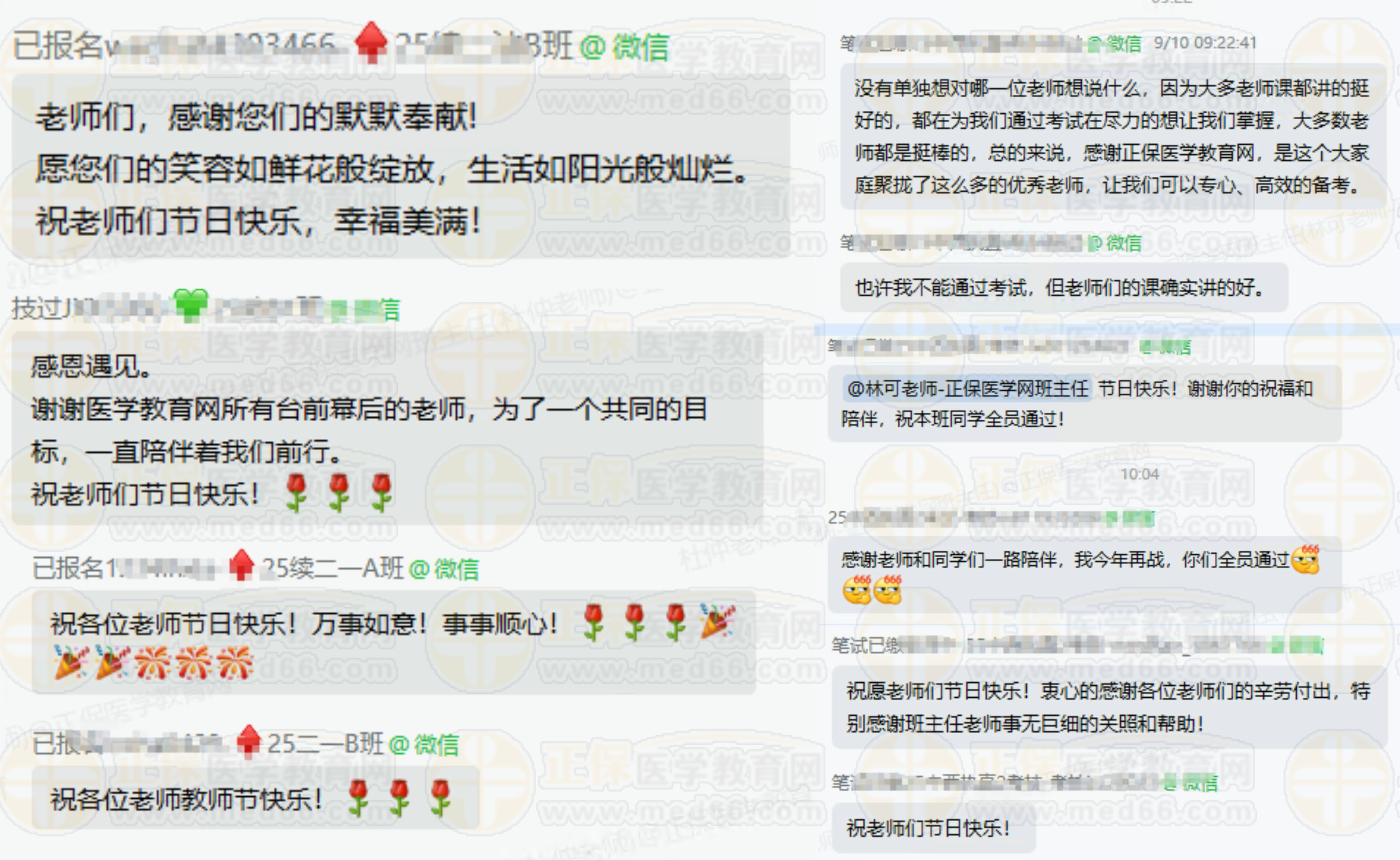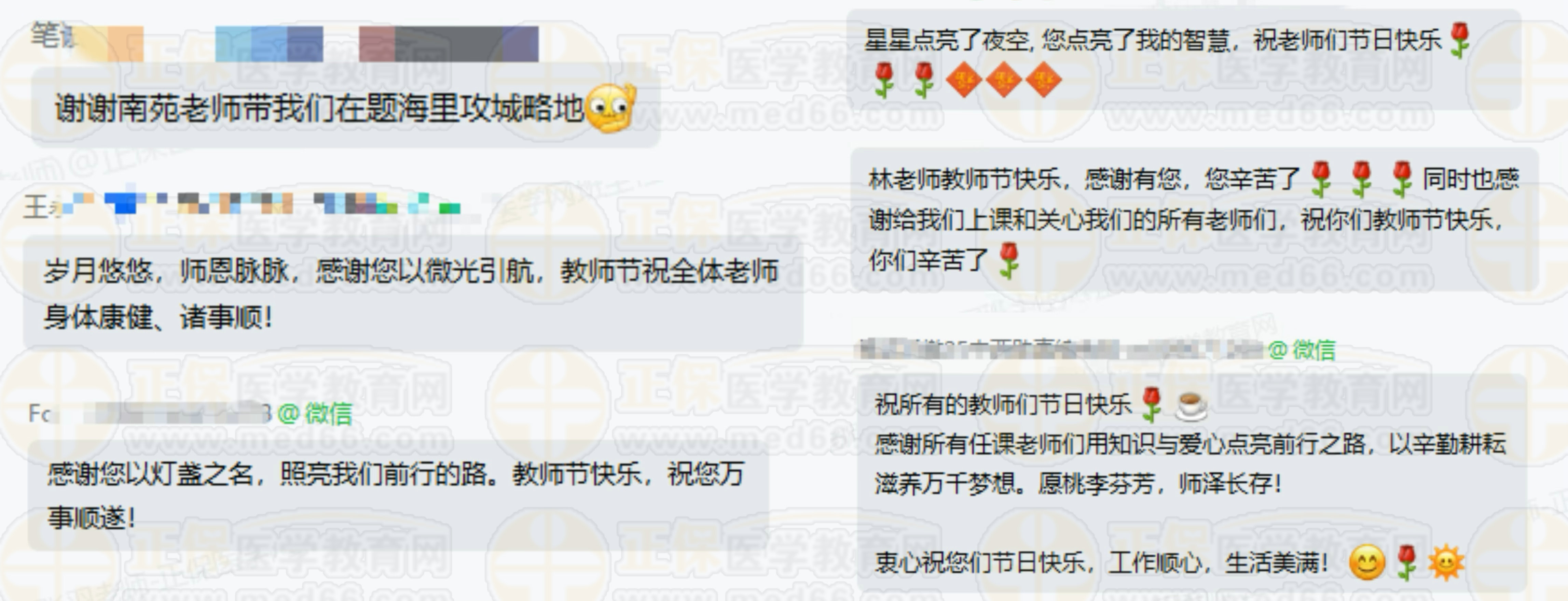 這些看似簡(jiǎn)單的舉動(dòng),卻蘊(yùn)含著學(xué)員們對(duì)老師們深深的敬愛(ài)。每一份祝福背后都是一顆顆渴望學(xué)習(xí)、追求進(jìn)步的心靈。老師們用他們的智慧點(diǎn)亮了學(xué)員們的醫(yī)考之路,而學(xué)員們的收獲和通關(guān)取證則是對(duì)老師們最好的回報(bào)。
