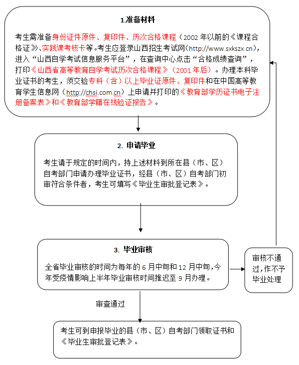 山西省2020年下半年高等教育自學(xué)考試申報(bào)畢業(yè)工作即將開(kāi)始,具體工作流程及注意事項(xiàng)如下: