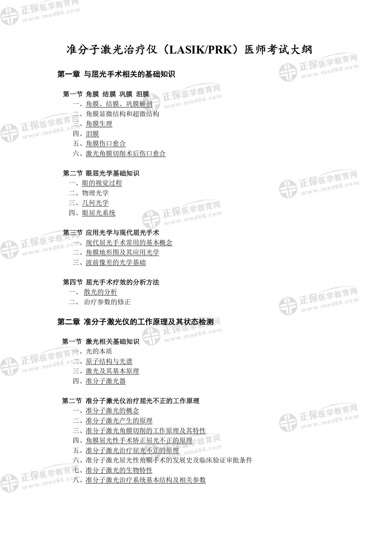 以上內(nèi)容由醫(yī)學(xué)教育網(wǎng)整理,大家對于“醫(yī)用設(shè)備上崗證考試:PRK、LASIK醫(yī)師專業(yè)考試大綱”都了解了嗎?希望對您有所幫助哦!更多更多大型醫(yī)用設(shè)備上崗證信息,可點(diǎn)擊醫(yī)學(xué)教育網(wǎng)查看更多哦!