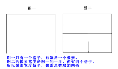 4、正方形的圖像矩陣,像素寬度減少一半,則像素總數(shù)增加