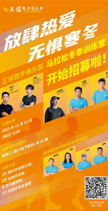 針對大眾跑者,正保跑步俱樂部特別開展了“放肆熱愛 無懼寒冬”冬季訓(xùn)練營,幫助跑者在健康和安全的前提下,通過科學(xué)系統(tǒng)地訓(xùn)練,不斷提高跑步能力,超越昨天的自己。針對青少年,開展青少年體能&中考體育培訓(xùn)班,通過專業(yè)的科學(xué)周期化訓(xùn)練,幫助孩子建立良好運(yùn)動(dòng)習(xí)慣、不斷提高身體素質(zhì)、輕松通過各項(xiàng)身體測試、體育滿分通過;同時(shí)挖掘和培養(yǎng)有運(yùn)動(dòng)天賦的孩子,持續(xù)培養(yǎng)和打造他們的高考晉級之路。歡迎大家積極報(bào)名參與,提高跑步專業(yè)度,健康生活!
