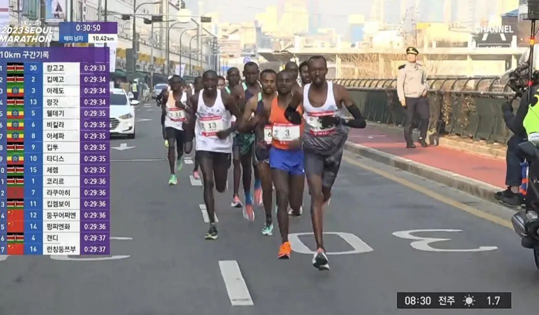 首爾馬拉松,董國建、彭建華、仁青東知布分別以2小時(shí)09分25秒、2小時(shí)09分57秒、2小時(shí)11分10秒的成績順利完賽,仁青東知布更刷新個(gè)人PB,在與一眾國際精英選手的較量中,展現(xiàn)出了不俗實(shí)力。