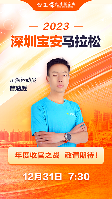 2023深圳寶安馬拉松強勢來襲,賽事將于12月31日7:30鳴槍開跑!深圳寶安馬拉松作為寶安本土高端國際化體育賽事IP,自2016年首創(chuàng)以來已成功舉辦5屆賽事。從首屆的中國田徑協(xié)會銅牌賽事跳躍升格蟬聯(lián)中國田協(xié)“金牌賽事”,斬獲世界田聯(lián)“精英標牌賽事”殊榮。正保跑步俱樂部運動員管油勝將如約參加本屆賽事,這既是管神的年度收官之戰(zhàn),也是正保跑步俱樂部的年度收官之戰(zhàn),期待管神可以和俱樂部一起為2023年畫上一個完美的句號!