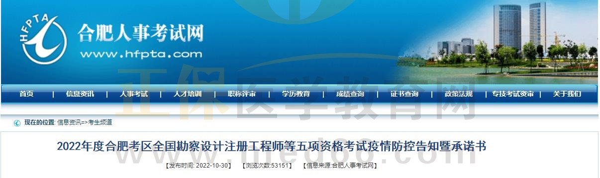 近期,小編查詢各地區(qū)人事考試官網(wǎng),發(fā)現(xiàn)安徽合肥市人力資源和社會(huì)保障局發(fā)布了《2022年度合肥考區(qū)全國(guó)勘察設(shè)計(jì)注冊(cè)工程師等五項(xiàng)資格考試疫情防控告知暨承諾書》的通知,為了幫助考生們了解,小編為大家整理如下!