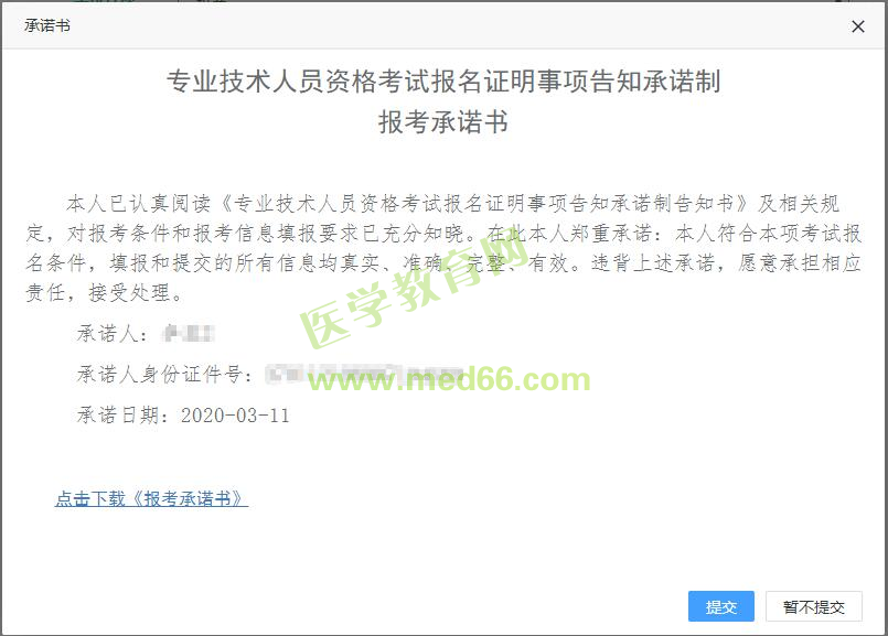 1)若為正常報名考生,點(diǎn)擊【保存】,彈出簽訂報考承諾書頁面:
