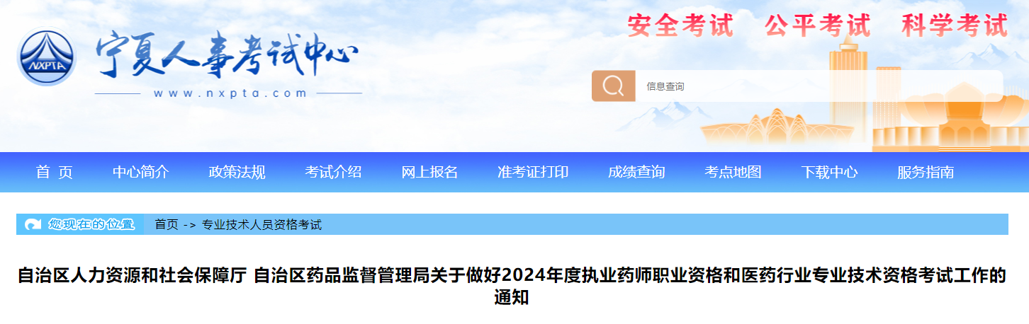根據(jù)《人力資源社會(huì)保障部人事考試中心關(guān)于2024年度執(zhí)業(yè)藥師職業(yè)資格考試考務(wù)工作的通知》(人考中心函〔2024〕29號(hào))要求,現(xiàn)將考試工作有關(guān)事項(xiàng)通知如下。