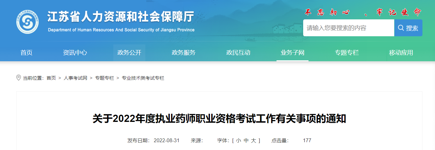 根據(jù)《國家藥監(jiān)局 人力資源社會(huì)保障部關(guān)于印發(fā)執(zhí)業(yè)藥師職業(yè)資格制度規(guī)定和執(zhí)業(yè)藥師職業(yè)資格考試實(shí)施辦法的通知》(國藥監(jiān)人〔2019〕12號(hào))和《人力資源社會(huì)保障部人事考試中心關(guān)于做好2022年度執(zhí)業(yè)藥師職業(yè)資格考試考務(wù)工作的通知》(人考中心函〔2022〕54號(hào))以及《省人力資源社會(huì)保障廳關(guān)于進(jìn)一步加強(qiáng)我省專業(yè)技術(shù)資格考試資格審查工作的通知》(蘇人社發(fā)〔2018〕383號(hào))文件精神,為做好我省2022年度執(zhí)業(yè)藥師職業(yè)資格考試考務(wù)工作,現(xiàn)將有關(guān)事項(xiàng)通知如下: