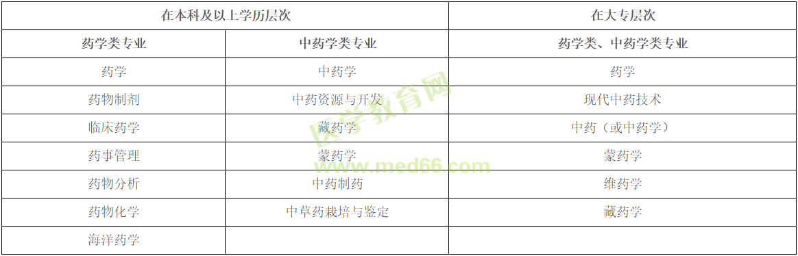 報(bào)考條件中要求的“藥學(xué)類、中藥學(xué)類專業(yè)”,按照國務(wù)院學(xué)位委員會、教育部印發(fā)的《學(xué)位授予和人才培養(yǎng)學(xué)科目錄設(shè)置與管理辦法》《普通高等學(xué)校高等職業(yè)教育(??疲I(yè)設(shè)置管理辦法》和《學(xué)位授予和人才培養(yǎng)學(xué)科目錄》《普通高等學(xué)校本科專業(yè)目錄(2012年)》《普通高等學(xué)校高等職業(yè)教育(??疲I(yè)目錄(2015年)》等規(guī)定,對照學(xué)科目錄來界定。
