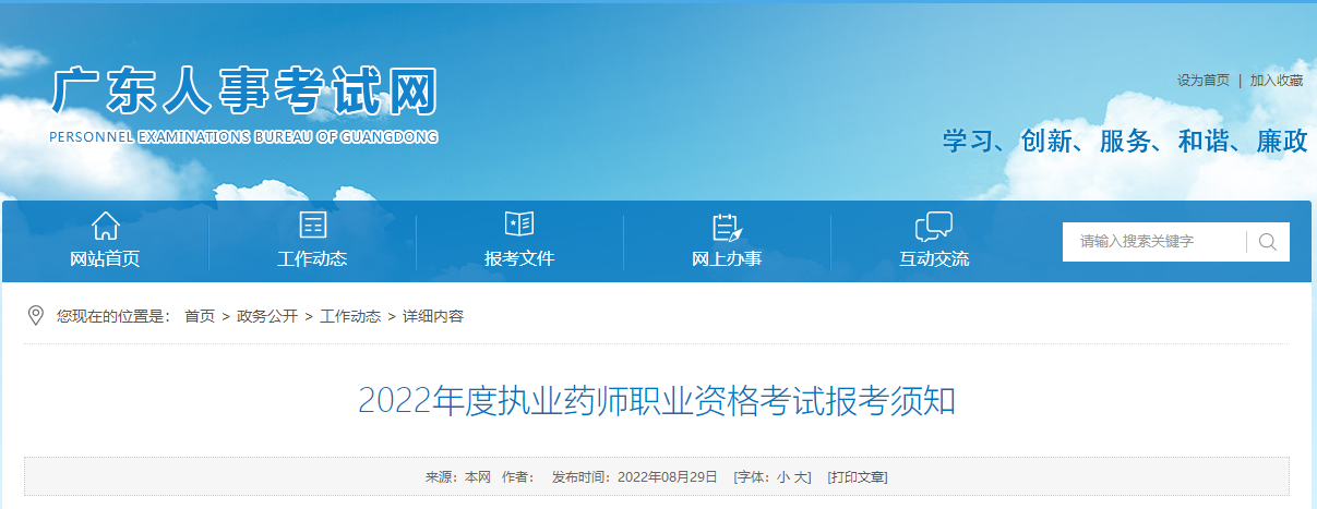 根據(jù)人力資源和社會保障部人事考試中心《關(guān)于做好2022年度執(zhí)業(yè)藥師職業(yè)資格考試考務(wù)工作的通知》(人考中心函〔2022〕54號)和廣東省人力資源和社會保障廳《關(guān)于廣東省人力資源社會保障系統(tǒng)2022年度專業(yè)技術(shù)人員職業(yè)資格考試計(jì)劃及有關(guān)事項(xiàng)的通知》(粵人社函〔2022〕21號)要求,為方便廣大考生報(bào)考該項(xiàng)考試,現(xiàn)將有關(guān)事項(xiàng)告知如下。