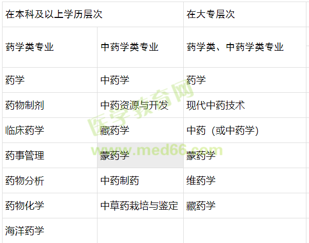 報考條件中要求的“藥學類、中藥學類專業(yè)”,按照國務院學位委員會、教育部印發(fā)的《學位授予和人才培養(yǎng)學科目錄設(shè)置與管理辦法》《普通高等學校高等職業(yè)教育(專科)專業(yè)設(shè)置管理辦法》和《學位授予和人才培養(yǎng)學科目錄》《普通高等學校本科專業(yè)目錄(2012年)》《普通高等學校高等職業(yè)教育(??疲I(yè)目錄(2015年)》等規(guī)定,對照學科目錄來界定。