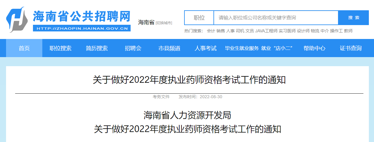 海南省人事考試中心發(fā)布了關(guān)于《海南省人力資源開(kāi)發(fā)局關(guān)于做好2022年度執(zhí)業(yè)藥師資格考試工作的通知》,醫(yī)學(xué)教育網(wǎng)小編整理如下: