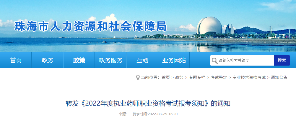 廣東珠海2022年度執(zhí)業(yè)藥師職業(yè)資格考試公告