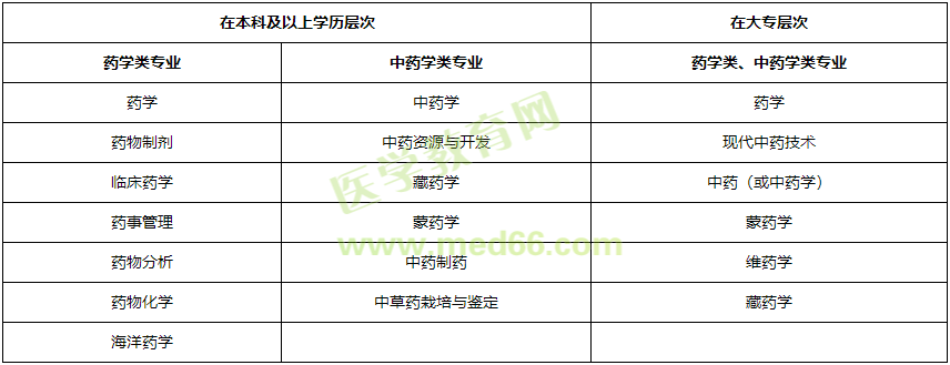 報考條件中要求的“藥學類、中藥學類專業(yè)”,按照國務院學位委員會、教育部印發(fā)的《學位授予和人才培養(yǎng)學科目錄設置與管理辦法》《普通高等學校高等職業(yè)教育(??疲I(yè)設置管理辦法》和《學位授予和人才培養(yǎng)學科目錄》《普通高等學校本科專業(yè)目錄(2012年)》《普通高等學校高等職業(yè)教育(專科)專業(yè)目錄(2015年)》等規(guī)定,對照學科目錄來界定。