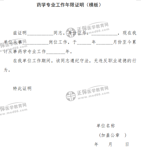 執(zhí)業(yè)藥師考試報名工作年限證明是在單位開的。一般發(fā)布報名通知的網站,比如,當地人事考試網或是當地人社局有工作證明模板,報考人員只需要打印出來,如實填寫相關信息,由單位蓋章即可。工作證明模板如下,各位考生可參考↓↓↓