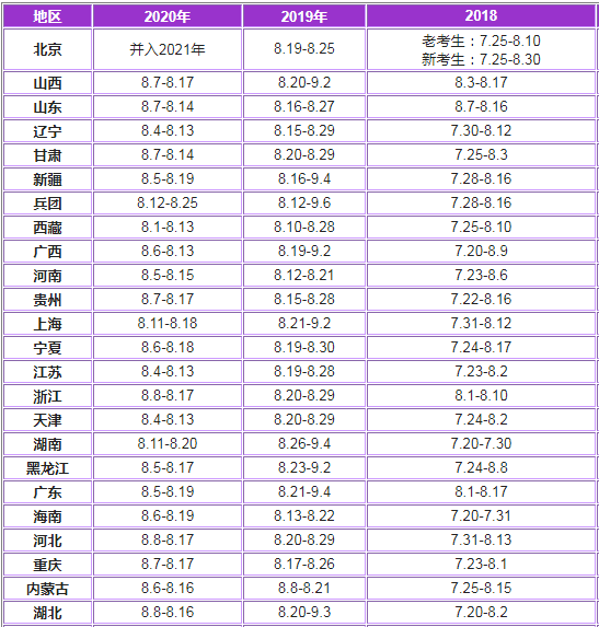 另外,2018-2020年執(zhí)業(yè)藥師考試各省市報名時間:
