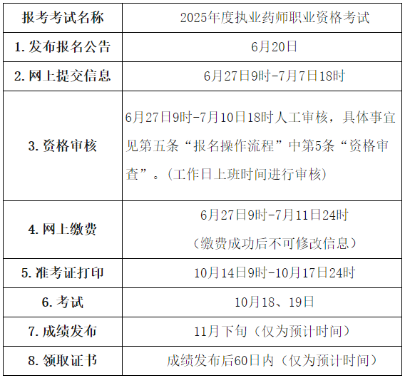 根據(jù)《人力資源社會(huì)保障部辦公廳關(guān)于2025年度專業(yè)技術(shù)人員職業(yè)資格考試工作計(jì)劃及有關(guān)事項(xiàng)的通知》(人社廳發(fā)〔2025〕1號(hào)),2025年度執(zhí)業(yè)藥師職業(yè)資格考試于10月18日、19日舉行,考試形式為電子化考試(機(jī)考)。現(xiàn)將有關(guān)事項(xiàng)通知如下: