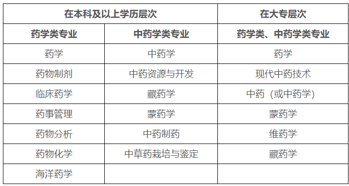 報(bào)考條件中要求的“藥學(xué)類、中藥學(xué)類專業(yè)”,按照國務(wù)院學(xué)位委員會、教育部印發(fā)的《學(xué)位授予和人才培養(yǎng)學(xué)科目錄設(shè)置與管理辦法》《普通高等學(xué)校高等職業(yè)教育(專科)專業(yè)設(shè)置管理辦法》和《學(xué)位授予和人才培養(yǎng)學(xué)科目錄》《普通高等學(xué)校本科專業(yè)目錄(2012年)》《普通高等學(xué)校高等職業(yè)教育(??疲I(yè)目錄(2015年)》等規(guī)定,對照學(xué)科目錄來界定。