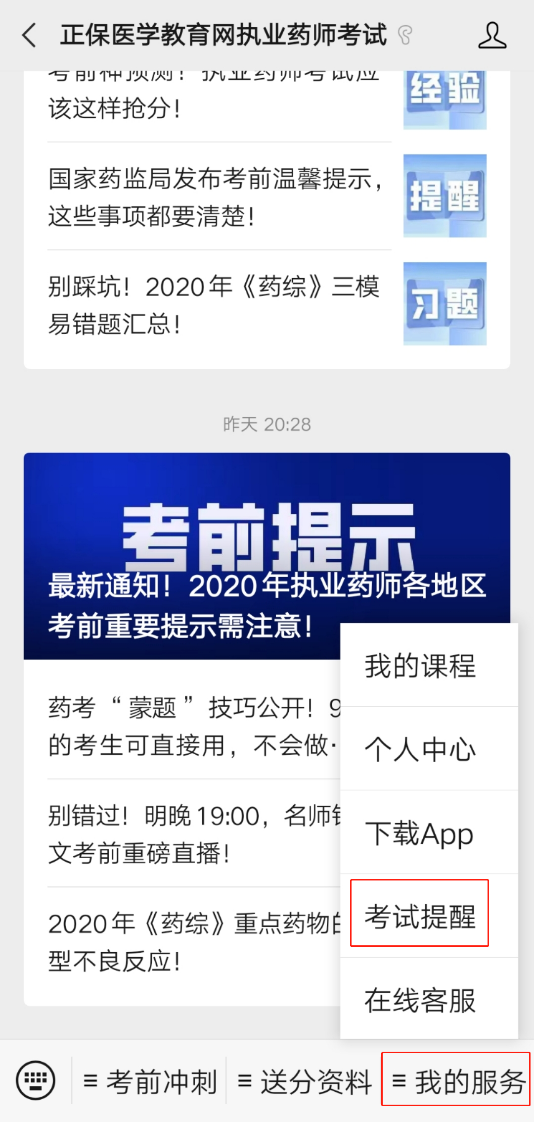 第二步:選擇【我的服務(wù)】-【考試提醒】