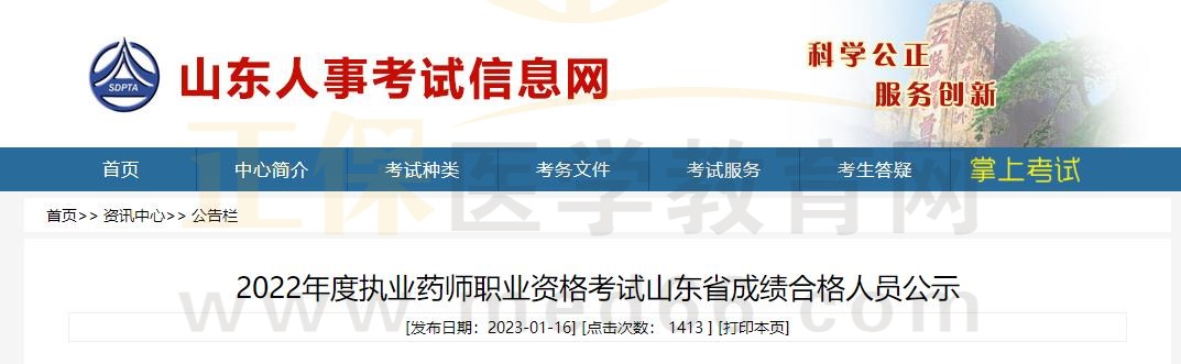 2022年度執(zhí)業(yè)藥師職業(yè)資格考試山東省成績(jī)合格人員公示
